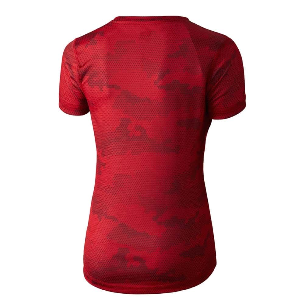 T-shirt tecnica da donna con stampa camouflage sul retro. Realizzato con tessuto AIR-MESH MIMET + NEOTEC 2.0. AIR-MESH ha una microperforazione nella sua trama che aumenta la traspirazione e riduce il peso, applicata su maniche, parte superiore del torace e sulla schiena, che sono le aree che richiedono una maggiore evacuazione. Cuciture piatte antisfregamento. Massima traspirabilità e asciugatura rapida “DRY-TEC+”. Trattamento antigraffio “SOFT-LIGHT”. Eccellente fissazione del colore “DC4”. Etichetta stampata. Modello anteriore ergonomico con pannello posteriore più lungo. Manica stile seduto. Copertura della cucitura del collo antigraffio. Composizione: Tessuto 100% Poliestere. Disponibile nelle taglie seguenti: S – M – L…