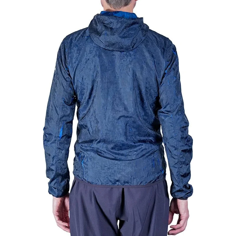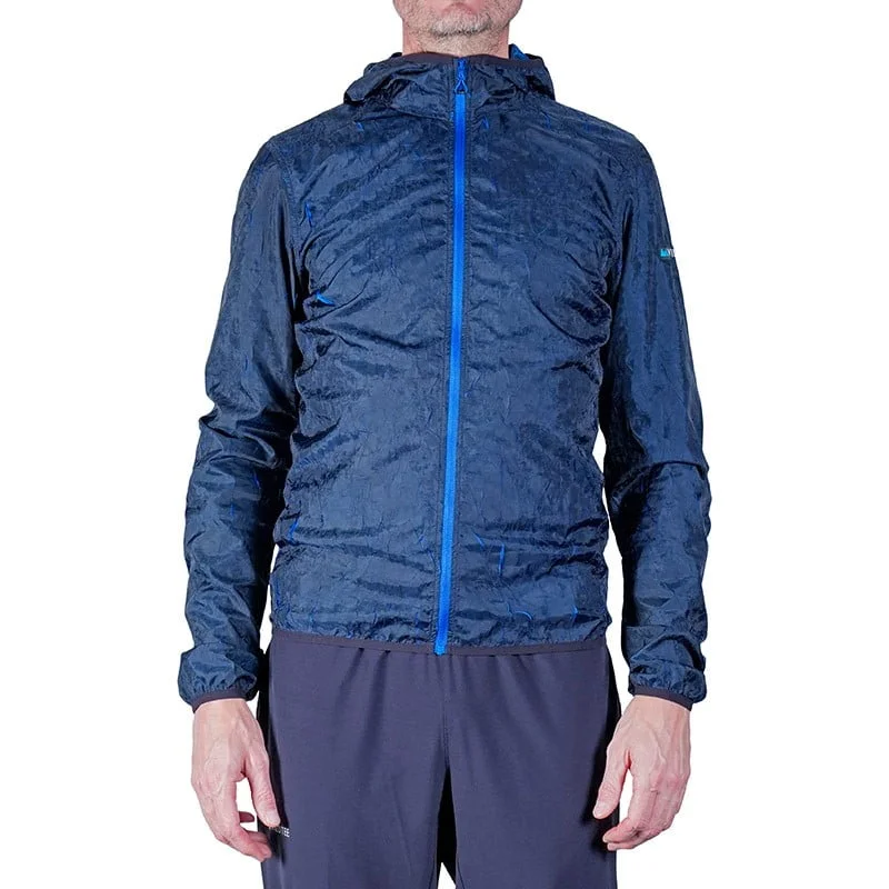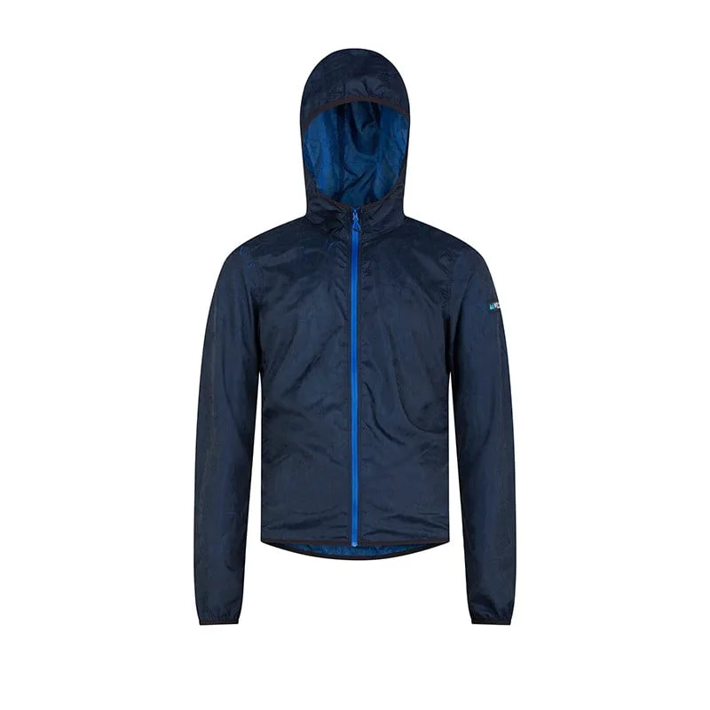 Indispensabile e confortevole giacca a vento con cappuccio che ti protegge dal maltempo. Da avere sempre a portata di mano, si ripiega e si compatta nella sua tasca interna. Grazie al tessuto stretch con effetto crepé, la giacca si adatta ai movimenti del tuo corpo aprendo e chiudendo le pieghe del tessuto lascia intravedere la sua anima blu.