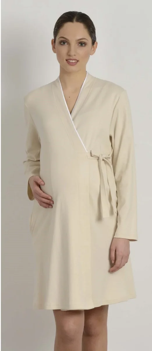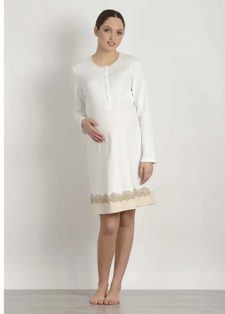 Camicia gestante manica lunga in puro cotone con pizzo a contrasto e Vestaglia sciallata manica lunga con tasca interna