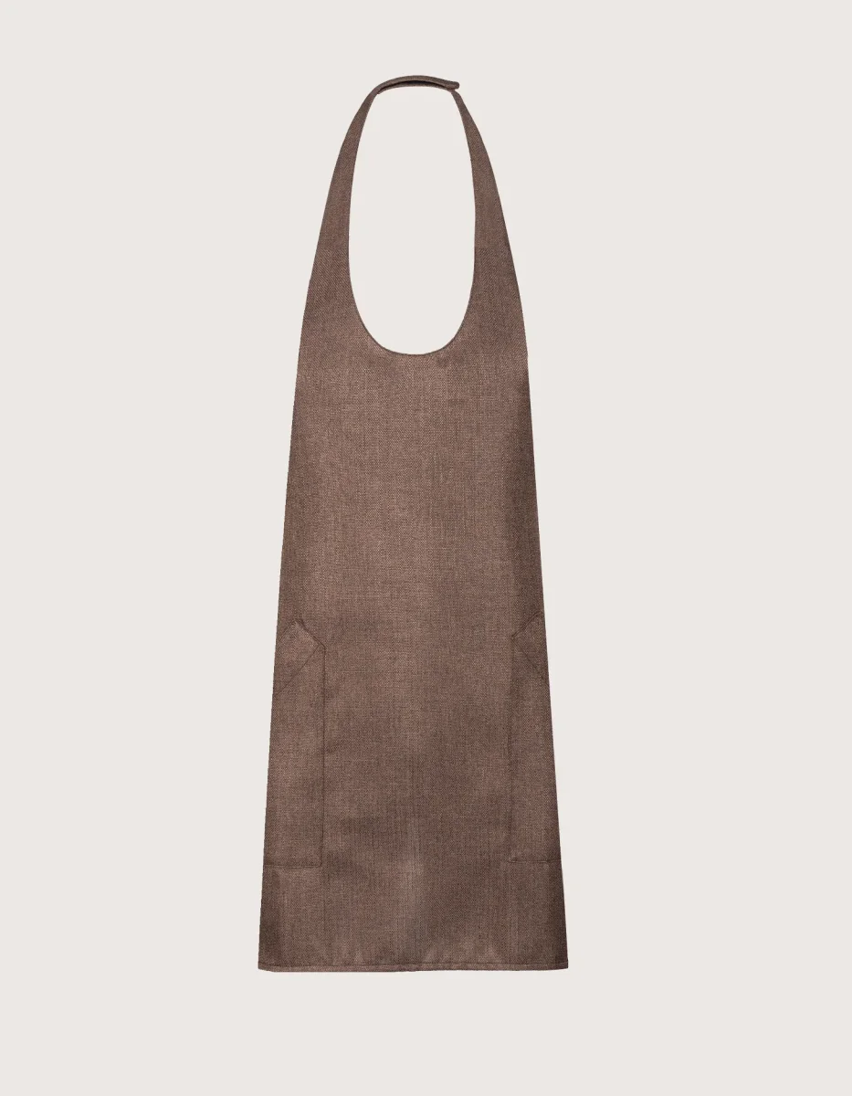 Grembiule unisex con pettorina ideale per addetti al servizio di sala e bar, nei colori naturale e marrone. Tessuto: poliestere 80% – lino 20%; Caratteristiche: con pettorina, collo regolabile con velcro, due tasca laterali e lacci da annodare dietro. Taglia unica, regolabile. Dimensioni: 70 x 65 cm (larghezza x altezza) + collo. Lavaggio garantito fino a 50 gradi. Prodotto 100% Made in Italy. Disponibile nei colori: Naturale/Marrone.