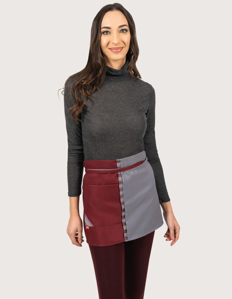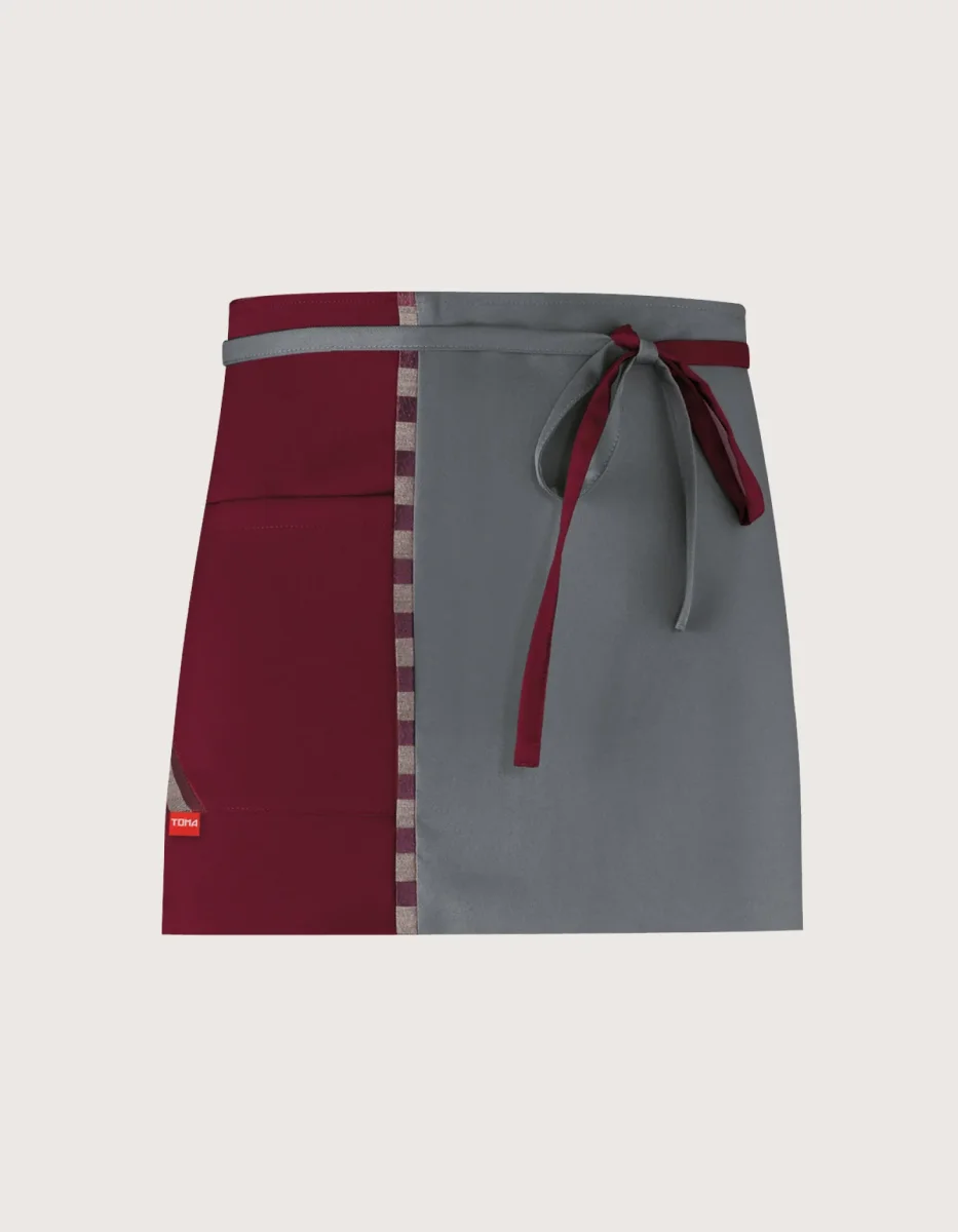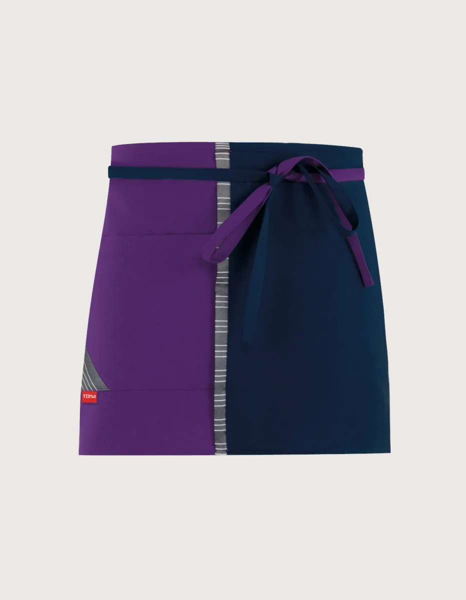 Grembiuli “Roger”senza pettorina colori a scelta bordeaux/grigio e viola/blu per addetti al servizio di sala, dim. 90×35 H. La confezione contiene 2 pezzi. Caratteristiche: unisex & taglia unica, tessuto 100% poliestere, tasca laterale e lacci da annodare in vita. Eleganti e pratici possono essere lavatati a 50° C, si asciugano rapidamente e sono facili da stirare, perfetti come grembiule da servizio nei ristoranti, pub, bar e pasticcerie. Abbigliamento professionale per la ristorazione. Prodotto da Toma Youniform, 100% Made in Italy.