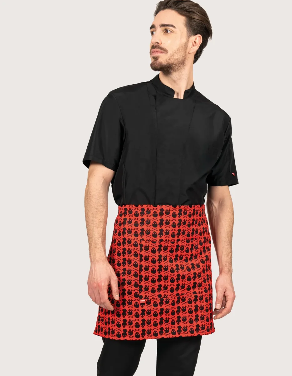 Coppia di grembiuli unisex “Nevada” per chef/cuoco (dim. 70×45 H), modello corto senza pettorina, in tessuto 100% cotone, resistente e traspirante. Dotato di comoda tasca centrale e lacci da annodare in vita. Lavaggio garantito fino a 60°C, ideale per cucine professionali, pasticcerie, gastronomie e laboratori alimentari. La confezione contiene 2 pezzi. Fantasia attuale: Teschio, coordinabile con pantaloni, altri grembiuli con o senza pettorina, cappelli, bandane e accessori per la divisa da chef. Prodotto da Toma Youniform, 100% Made in Italy. Il grembiule Nevada è disponibile anche in altre varianti: Italia, Cucina, Supereroi, NewYork, Game Over, Diavoletto, Giornale, Black & White,…