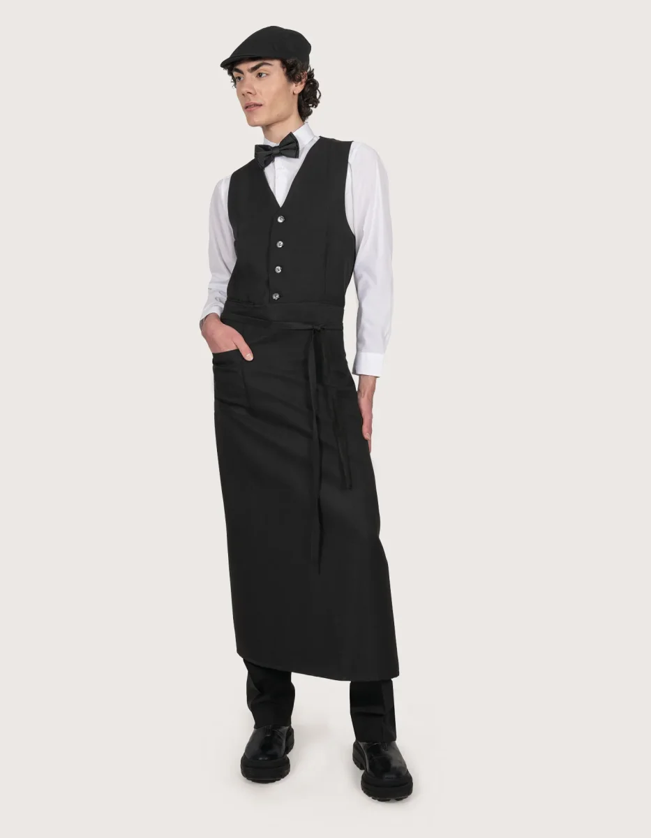 Nizza grembiuli lunghi senza pettorina “alla francese” unisex dim. 90×90 H in gessato nero o tinta unita a scelta.Taglia unica con tasca laterale e lunghi lacci da annodare in vita. La confezione contiene 2 pezzi (della stesso tessuto) una soluzione di shopping intelligente e conveniente aver per avere sempre un grembiule di scorta; 100% poliestere, tessuto resistente, che può essere lavato in lavatrice ( 50 gradi) senza consumarsi o stropicciarsi, facili da stirare, perfetti come divisa da lavoro per la ristorazione.