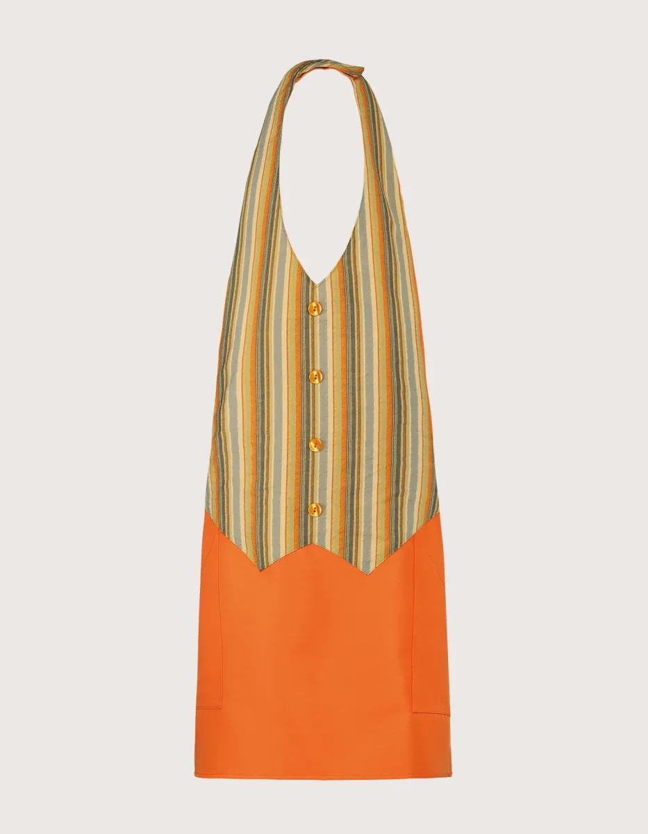 Grembiule “Simon” arancio con pettorina/gilet a fantasia