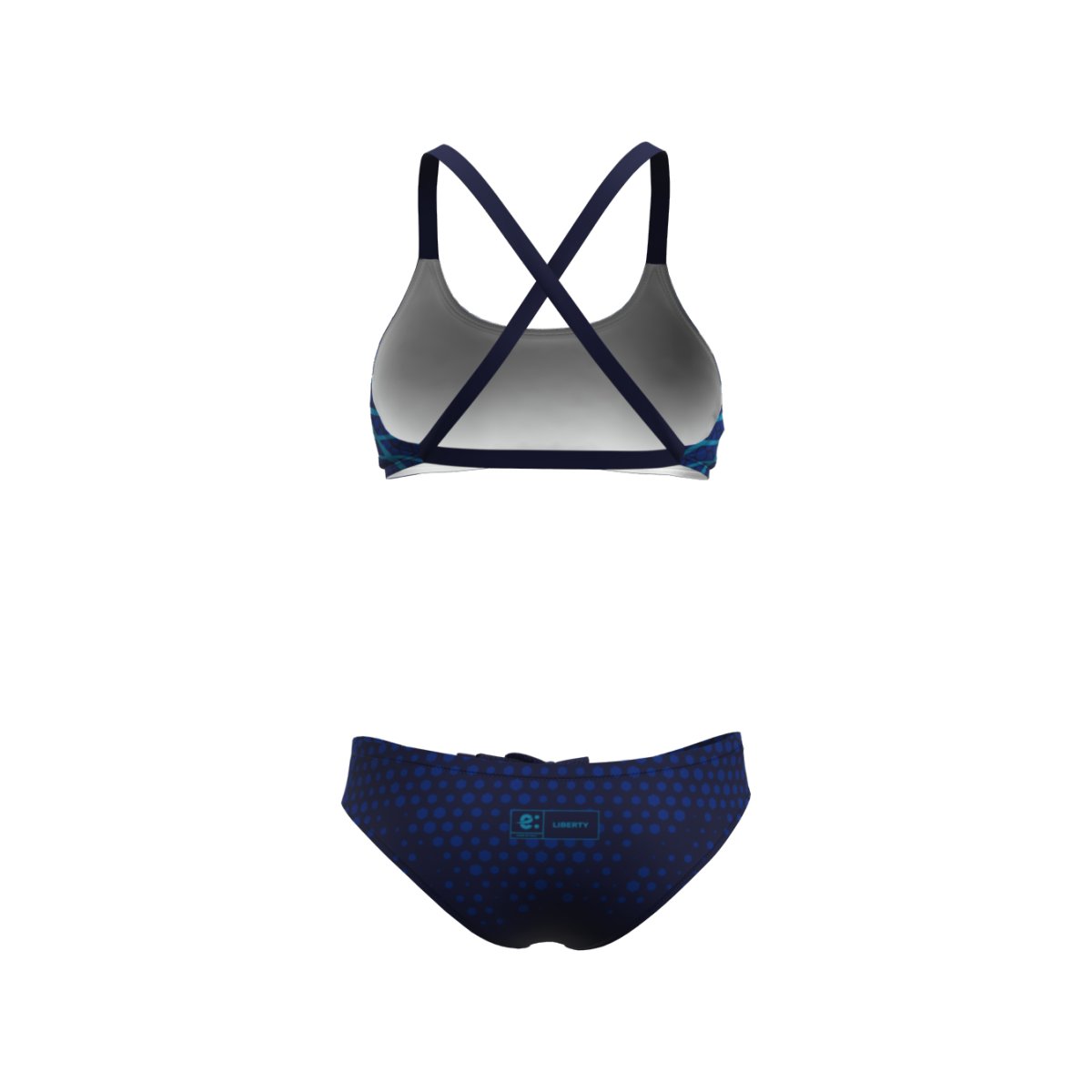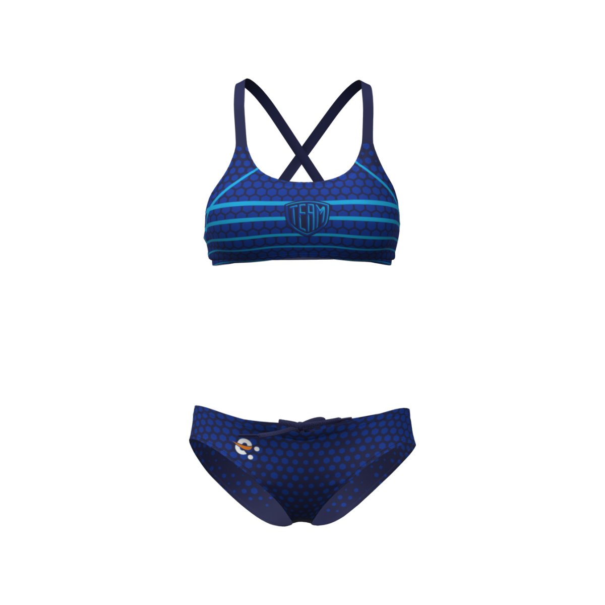 Bikini nuoto in sublimazione. Sgambatura media. Piattina da 6 mm per la regolazione. Cuciture zig zag. Top con morbide bretelle tubolari in microfibra. Tessuto: Mila: 80% poliestere 20% elastane. 145 grammi. Fodera 100% poliestere 100 grammi Taglie bambina: da 4 a 14 anni Taglie adulto: da 38 a 48
