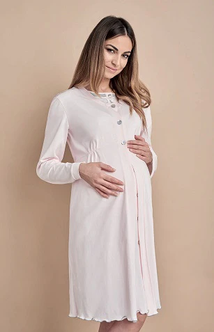 Camicia gestante mezza manica in maglia melangiata e Vestaglia abbottonata manica lunga.