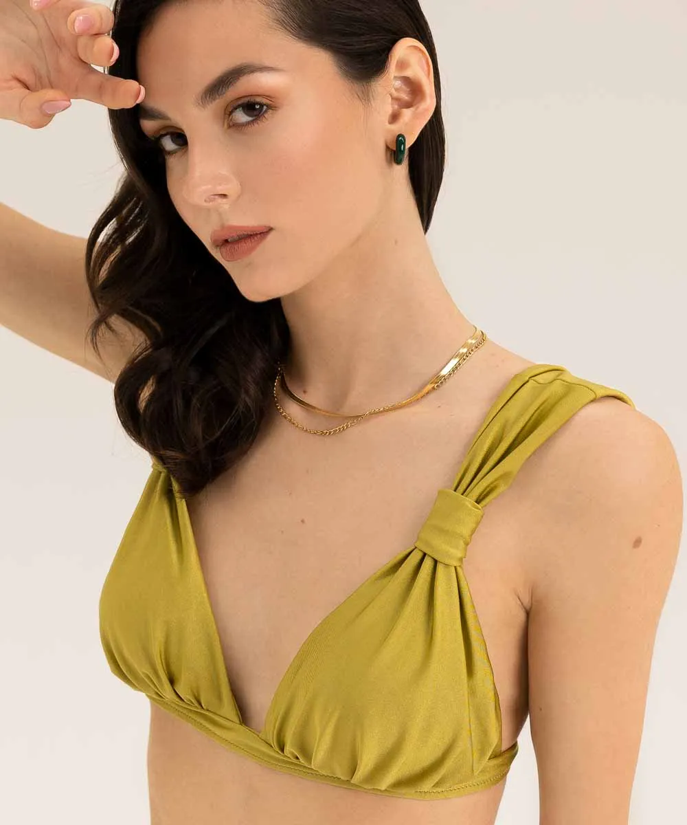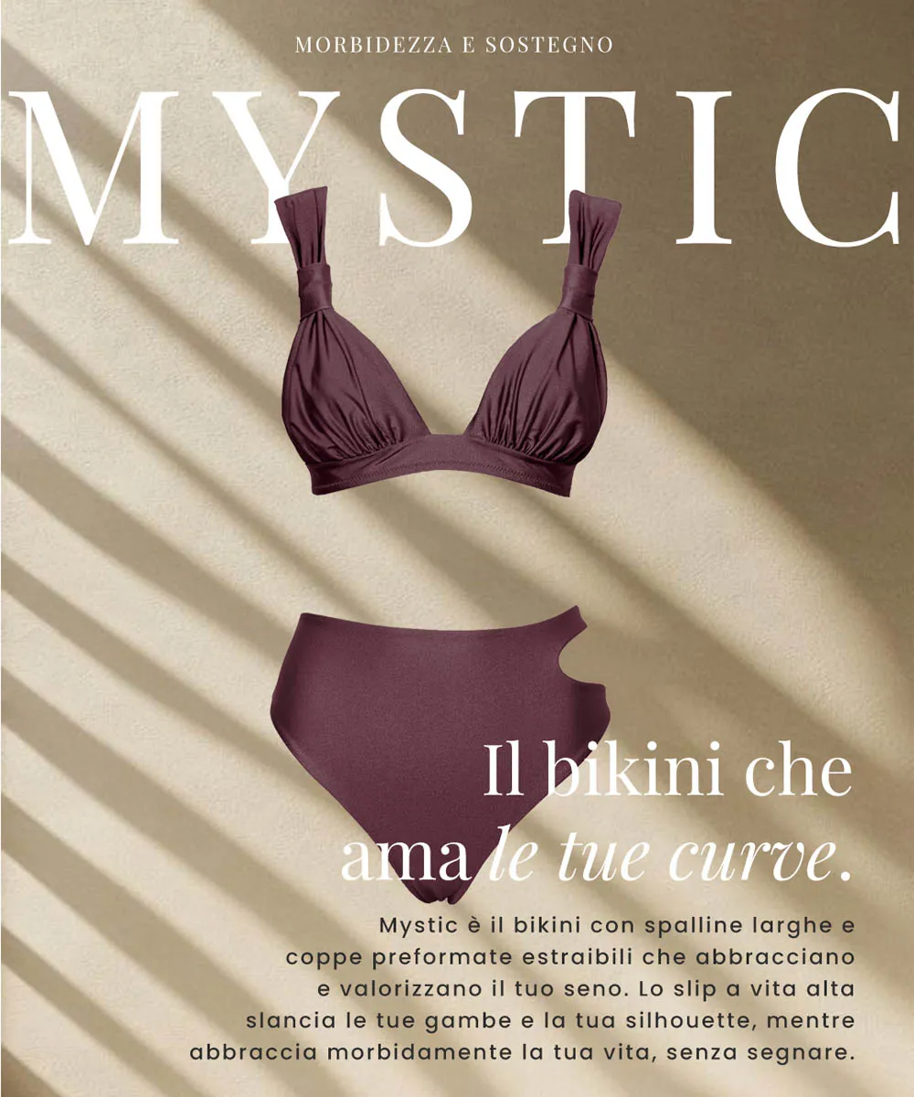 Bikini con reggiseno a triangolo per seno grande e slip a vita alta per abbracciare le tue curve. In lycra rigenerata sostenibile. Con coppe preformate estraibili. Comodo e femminile.