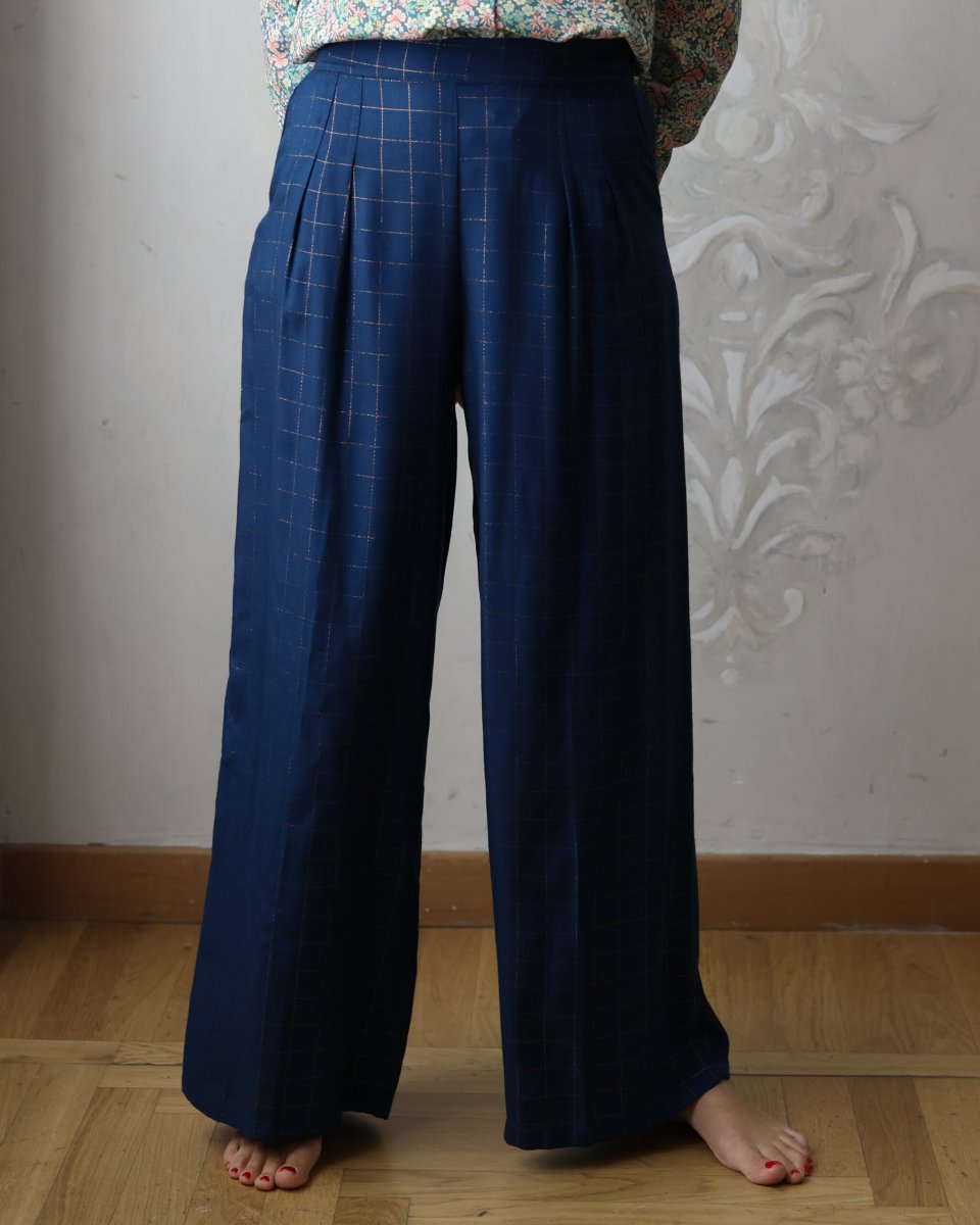 Pantaloni Alfredo – flanella lurex petrolio