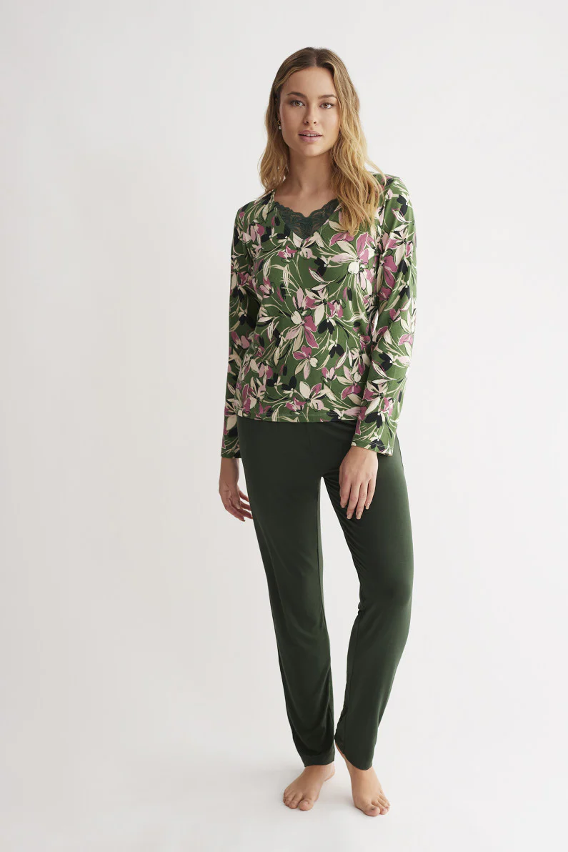 Collezione Promise Donna Pigiama 2 pezzi fantasia floreale Idea donna realizzata in maglina di micromodal con casacca manica lunga scollo a V con pizzo. Pantalone lungo tinta unita. Proposta sportiva e comoda con rifiniture faffinate. Capo immancabile nel tuo armadio grazie alla completezza della proposta. COMPOSIZIONE E LAVAGGIO e CURA Lavare a 30ยบ massimo Lavami […]