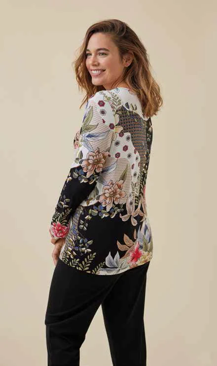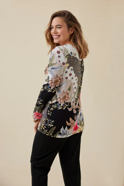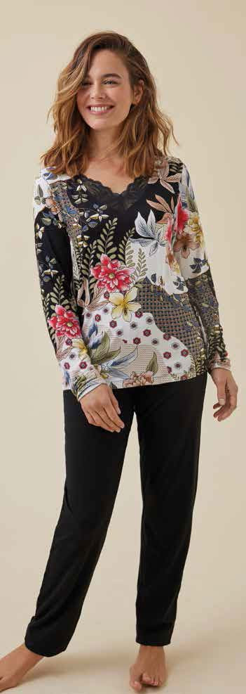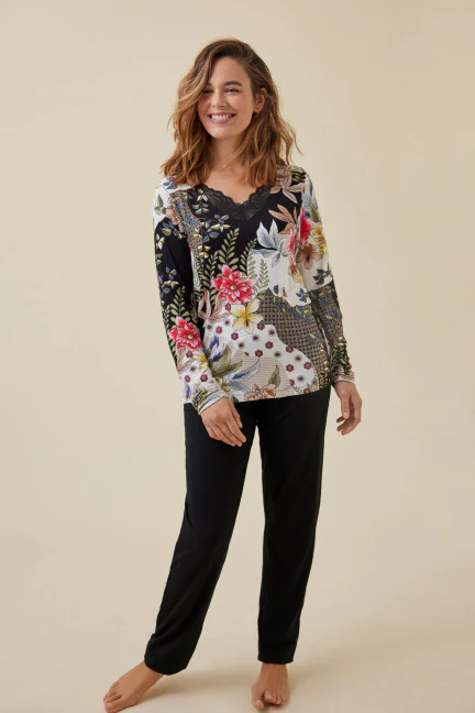 Pigiama donna con maglietta in fantasia floreale arricchita da pizzo.