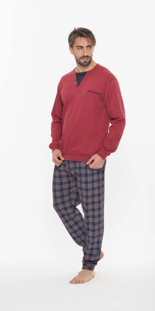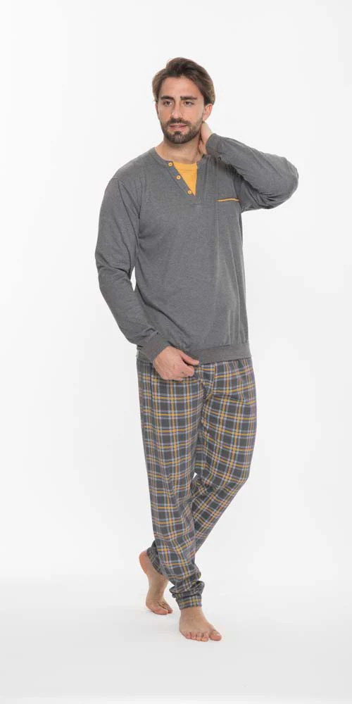 Pigiama Uomo pantalone lungo manica lunga in 100% fibra naturale.