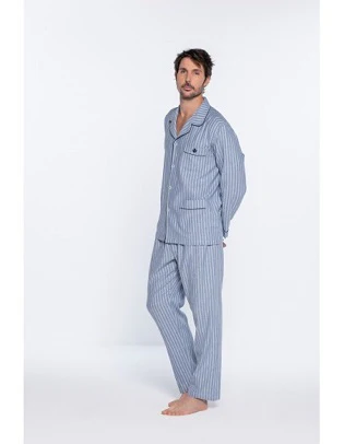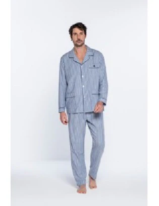 Pigiama da uomo Guasch in tessuto viyela rigato con collo e maniche a revers e pantalone lungo dritto. Tessuto Viyela 120gr/m2 – 100% cotone. Proposta in morbido tessuto realizzato nel modello aperto con i pantaloni aperti con bottoni e coulisse. Articolo immancabile nel tuo cassetto.