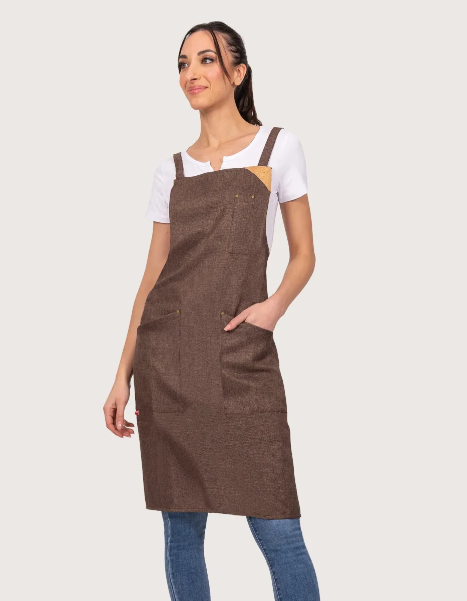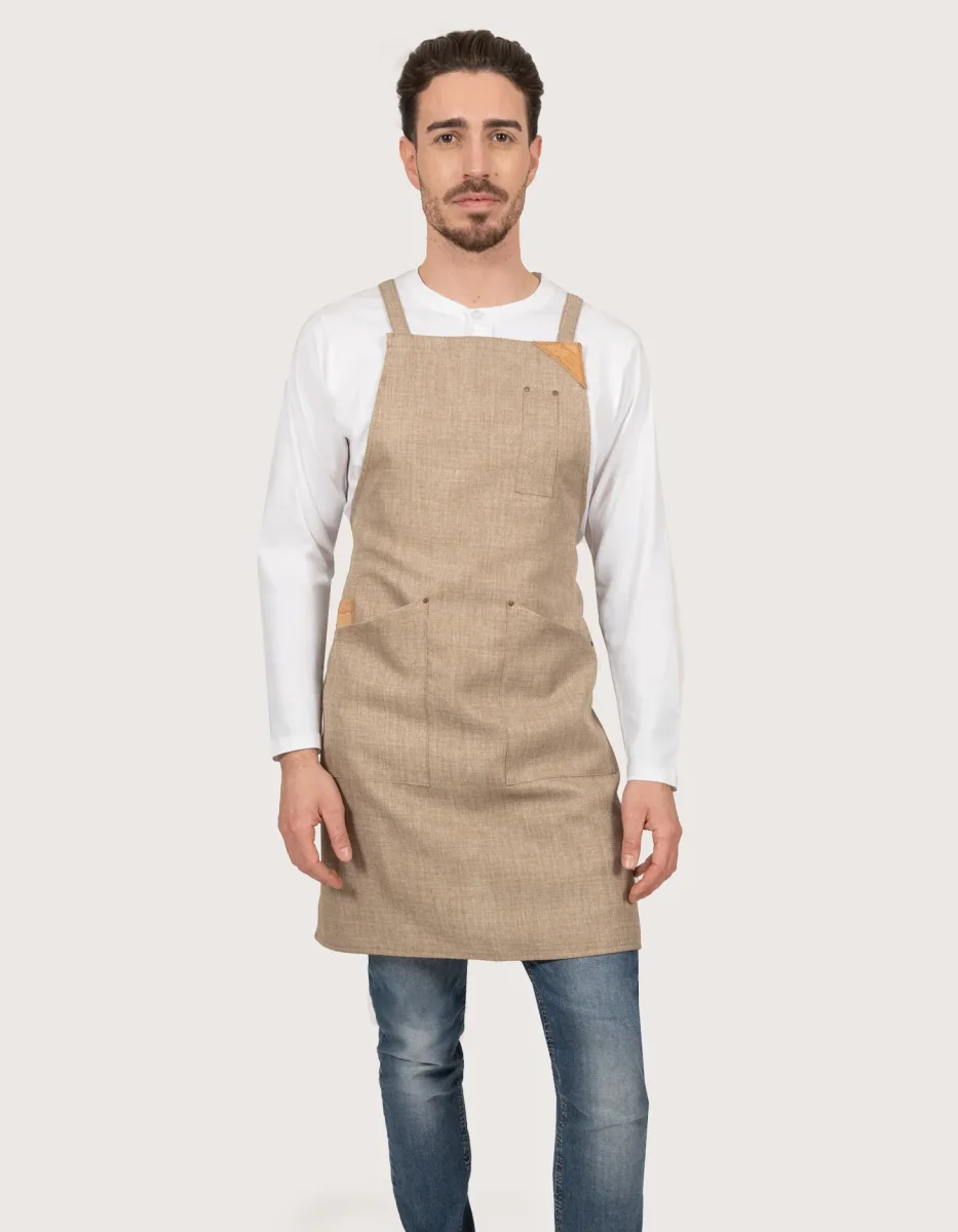 Grembiule lungo unisex per addetti al servizio di sala e bar, 70×85. Colori disponibili: naturale o marrone. Caratteristiche: tessuto misto poliestere 80% – lino 20%; allacciatura incrociata nella parte posteriore; tasche: due laterali e una tasca porta penne sul petto. Lavaggio garantito fino a 50 gradi. Prodotto 100% Made in Italy. Può essere utilizzato come grembiule da servizio nei ristoranti, pub, bar e pasticcerie.