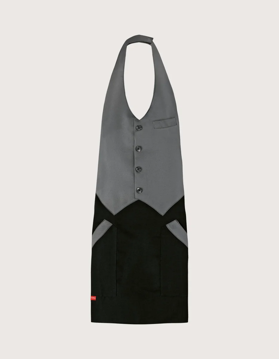 Grembiule unisex per addetti al servizio di sala e bar, Dim. 70×70 H, doppio colore grigio-nero. Caratteristiche: tessuto 100% poliestere; con due tasche laterali; lacci da annodare dietro; collo regolabile con velcro . Lavaggio garantito fino a 50 gradi. Prodotto 100% Made in Italy. Può essere utilizzato come grembiule da servizio nei ristoranti, pub, bar e pasticcerie.