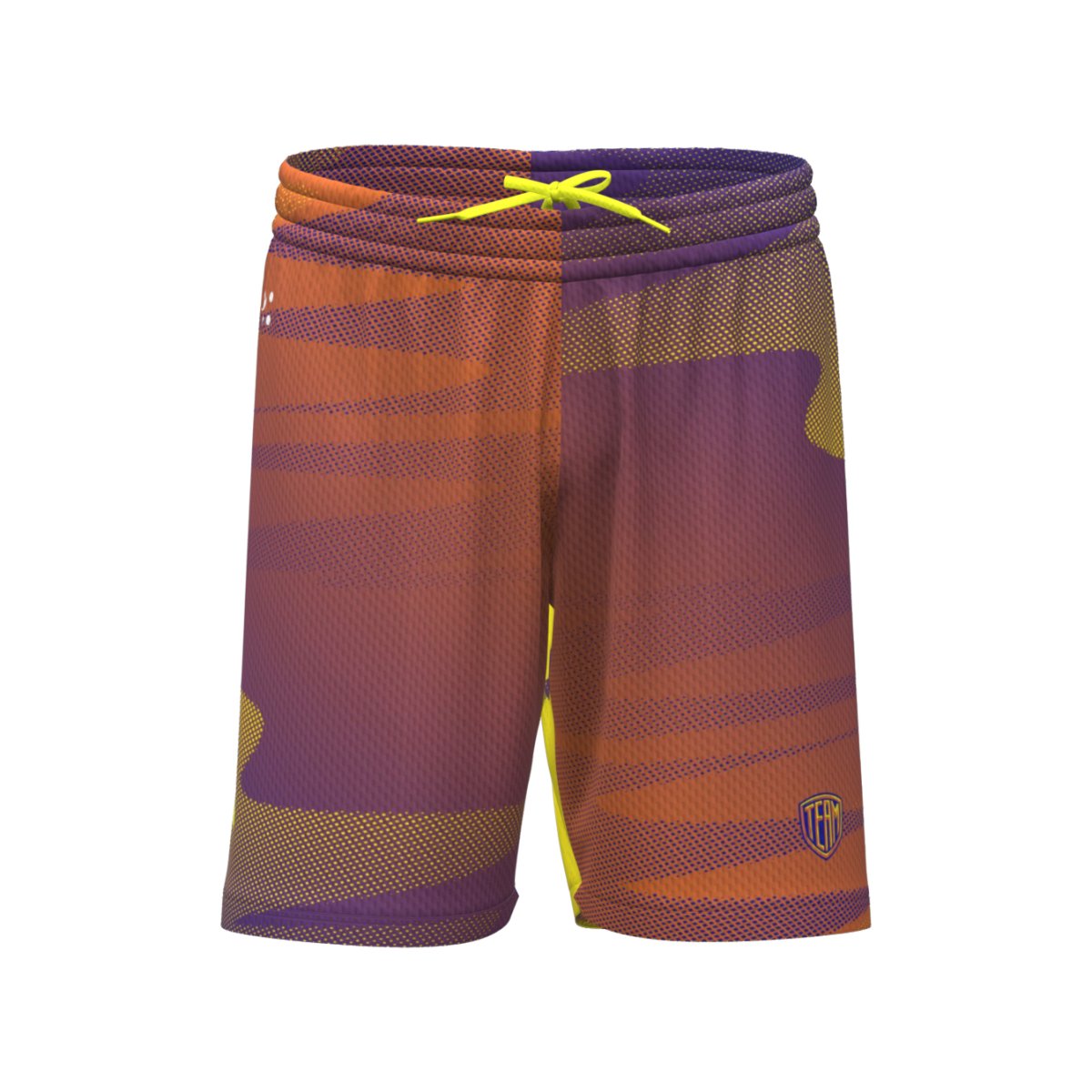 Pantaloncini beach volley unisex in sublimazione. Pratici e multiuso. Disponibili con e senza tasche. Tessuto: Polimesh. 100% Poliestere. 120 grammi. Taglie: da 5XS a 4XL