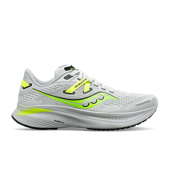 Le scarpe running Saucony Guide 16 da donna sono le scarpe ideali perle runner iperpronatori alla ricerca di un ottimo equilibrio tra ammortizzazione e reattività su medie e lunghe distanze. Guide 16 offrono una maggior ammortizzazione ad un peso ridotto, mediante l’intersuola PWRUN utile soprattutto nelle lunghe distanze.La soletta in PWRUN+ inoltre dona ulteriore comfort e una sensazione di maggior morbidezza. Il supporto Hollow-Tech si adatta ad ogni tipo di pronazione, rendendo la transizione tacco-punta e la falcata più fluida. La tomaia è in mesh traspirante ed elasticizzato che si adatta perfettamente al piede, grazie anche ad un sistema di…