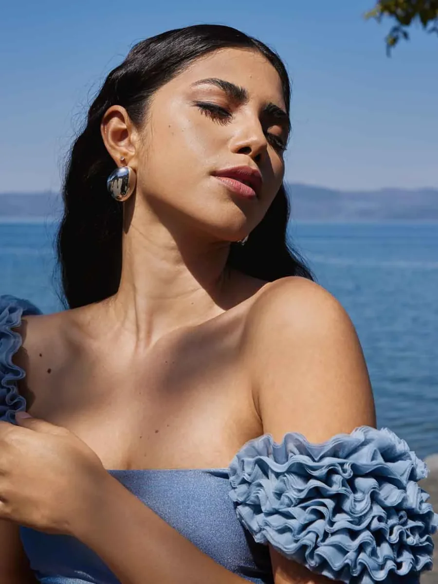 Bikini due pezzi a vita bassa pensato per esaltare la femminilità con leggerezza. Le rouches in tulle 3D valorizzano delicatamente spalle e fianchi, creando un equilibrio armonioso e super flattering.