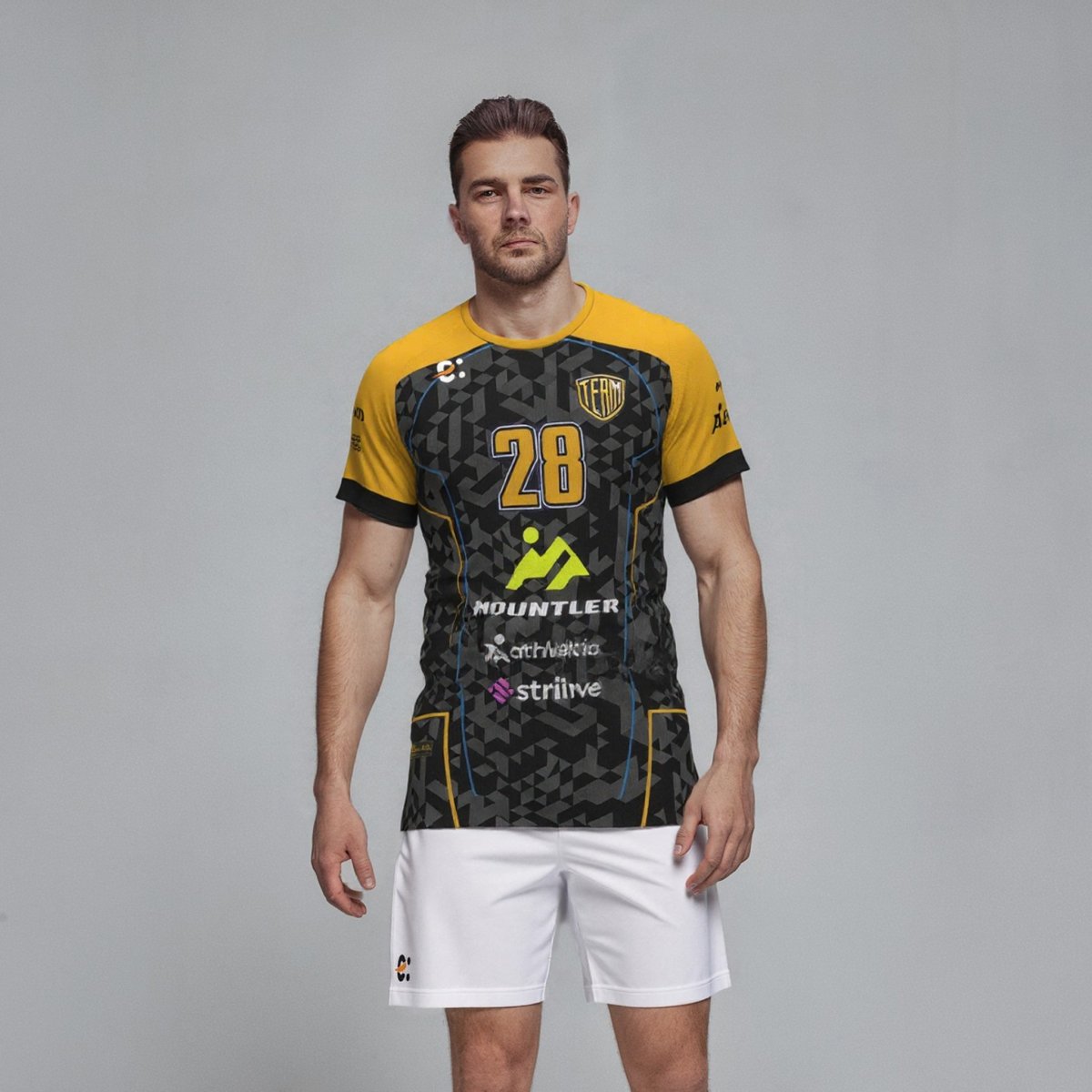 Maglia volley uomo professionale personalizzata in sublimazione. Maniche raglan. Vestibilità aderente. Tessuto: Tek mesh – 75% Poliestere 25% elastane. 125 grammi. Taglie: da XS a 5XL