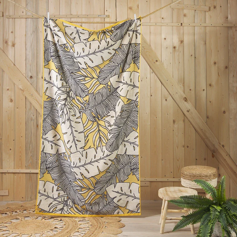 Il buon umore non ti abbandonerร mai! Al mare, a bordo piscina, addirittura in palestra, il telo in spugna jacquard รจ perfetto per te e per i tuoi i bambini.