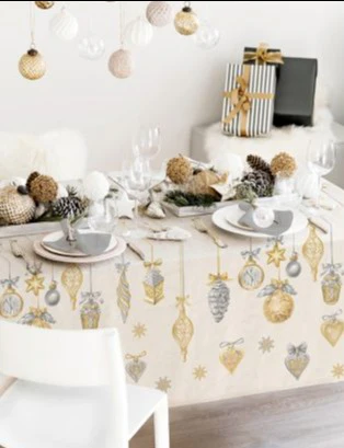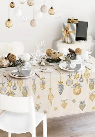 Tovaglia da tavola collezione Tessitura Randi. Fantasia da festa in cotone 100% tipo panama. Adatta per ogni festivitร  ideale per rendere la tavola ben addobbata. Disponibile in varie misure. 100% made in Italy