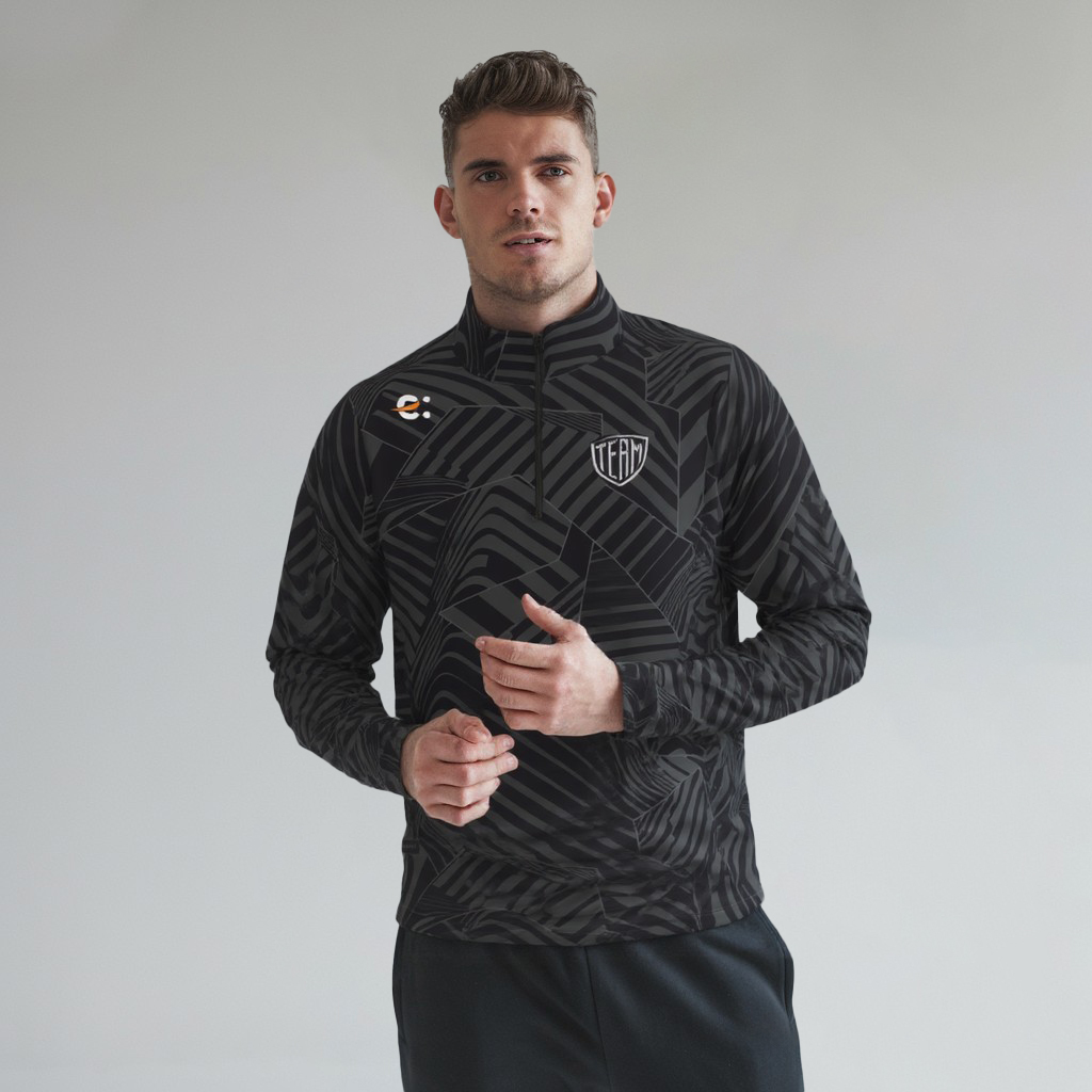 Felpa allenamento in sublimazione, mezza Zip. Unisex. Nessuna costina in vita per maggiore comfort durante l’allenamento. Non garzata. Tessuto: Micropiquet. 100% poliestere 240 grammi. Taglie: da 6XS a 5XL