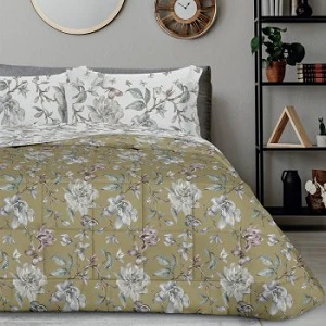 Proposta letto matrimoniale in fantasia floreale trapuntata a capo.