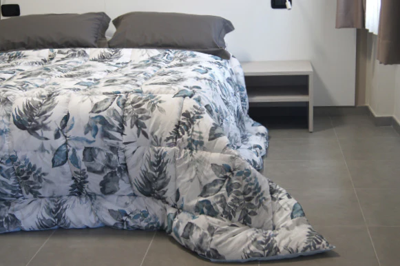 Trapunta Gran arredo S&g. Realizzata con tessuto stampa floreale anallergico e antibatterico mano microraso. Adatta in ambienti moderni รจ proggettata e disegnata in Italia. Imbottitura con soffice microfibra effetto piuma 400 gr./mq. Misura 260/260 cm.