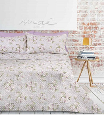 Proposta gran arredo Maè -Via Roma 60. Trapuntino quilt in fantasia floreale doppia faccia. Prodotto in Italia con il trattamento antirestringimento.