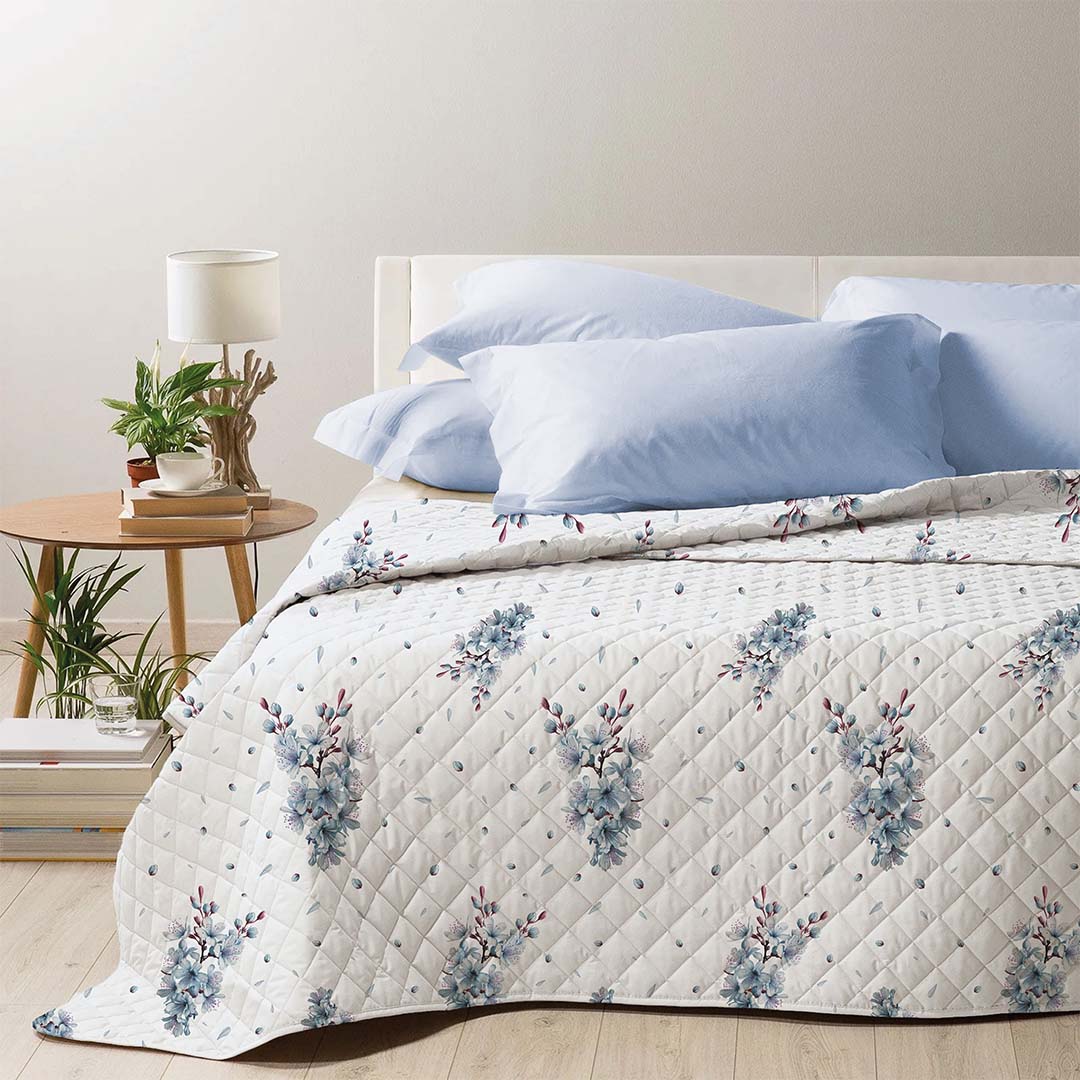 Silene trapuntino cucito e prelavato stampato disponibile nella misura matrimoniale. Disegnato e progettato in Italia, con stampa a pigmenti. Imbottitura soft-effect, fibra anallergica e antibatterica.