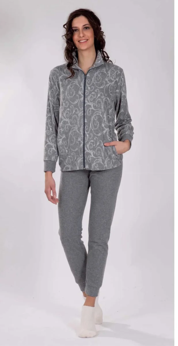 Collezione donna by sisters. Tuta donna aperta con zip con collo e tasche in fantasia ramata, pantaloni uniti con polsi alle caviglie. Comoditร e qualitร fanno di questo articolo un capo immancabile, proposta realizzata in punto milano, caldo ma fibra naturale sulla pelle. Made in Italy.