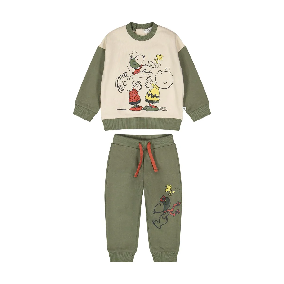 maglia girocollo con manica in contrasto di colore unito e pratica apertura sul retro con bottoni a pressione e stampa Peanuts sul lato frontale.