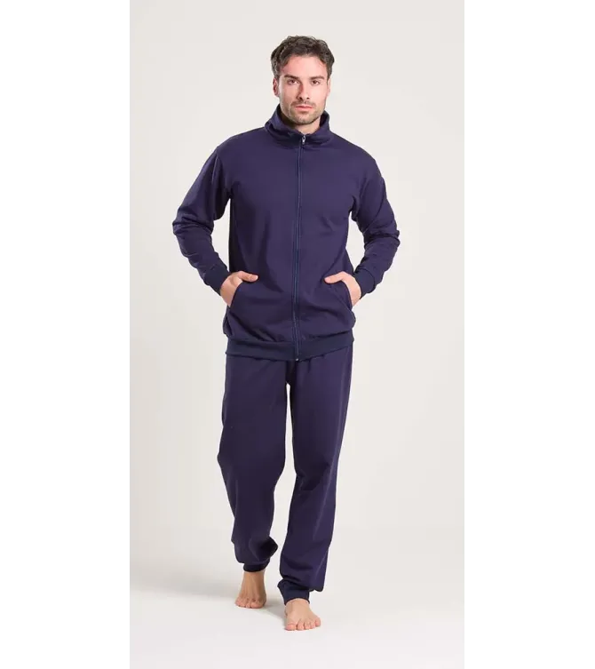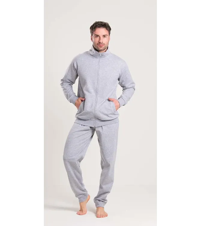 Tuta uomo modello aperta con zip in felpa di puro di cotone in tinta unita con tasche ai lati;