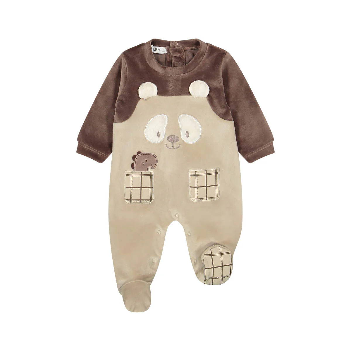 Tutina con piedini in confortevole ciniglia soft per noenato della linea Melby.