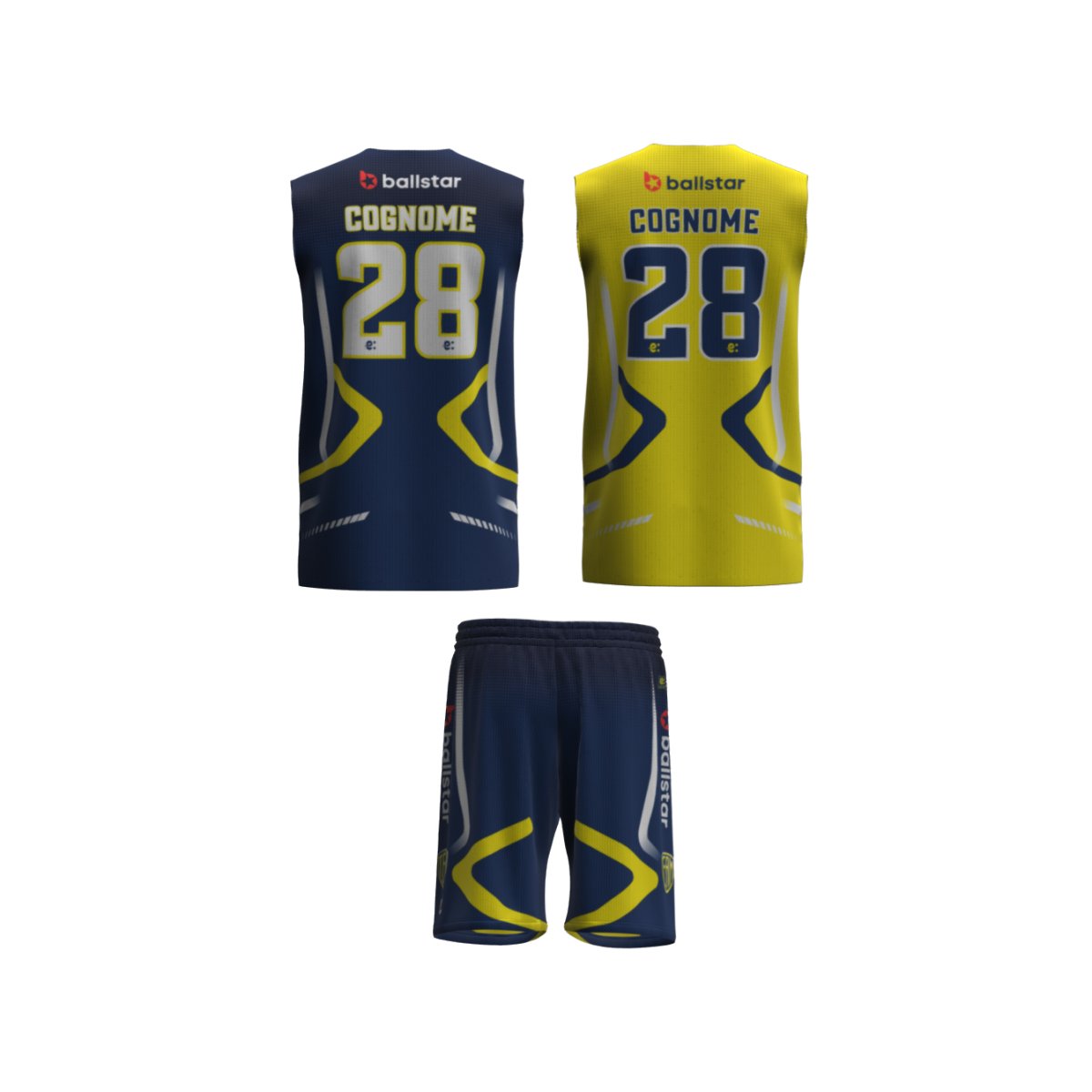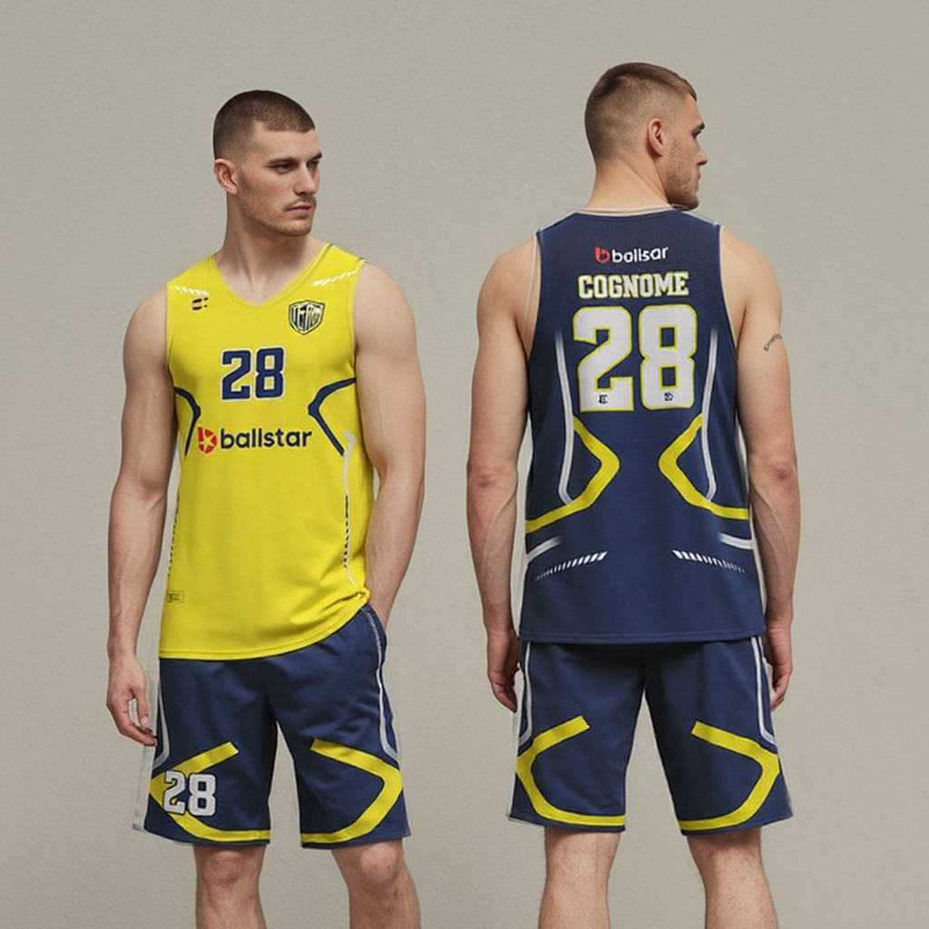 Divisa basket reversibile in sublimazione composta da canotta double face e pantaloncino single face. Adatto ai settori giovanili. Laccio in vita regolabile con colore a scelta. Tessuto: Polimesh. 100% poliestere. 120 grammi. Taglie: da 6XS a 5XL