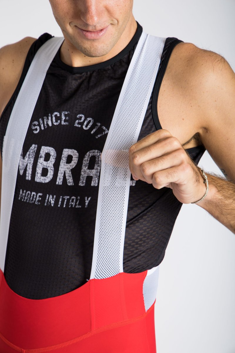 La salopette TONTI Umbrail, rappresenta un passo avanti per l’evoluzione di una salopette da ciclismo. E’ infatti progettata e voluta per garantire il massimo rendimento durante una seduta di ciclismo sia in esterna che interna. Realizzata in tessuto tecnico ad alta compressione, la salopette TONTI offre un ottima vestibilità aderente. Taglio vivo senza silicone all’orlo gamba garantisce infatti un ottima tenuta senza stringere. Testate e prodotte in Italia, le salopette hanno un girovita molto basso per renderle comode e poco ingombranti anche nelle giornate più calde. La parte dello schienale è retinata in modo da evitare l’utilizzo della maglia intima. Il fondello è quello che rende unica una salopette Umbrail , fatto e concepito sotto le caratteristiche che nessuno ha per stare in sella anche oltre le 10 ore. Un altra miglioria della casa madre sono i loghi posizionati sulle cosce, non più in pittura ma in silicone bianco , creato in Italia , questa soluzione infatti fa si che anche dopo numerosi lavaggi le scritte non si rovinino creando un effetto marmoreo.